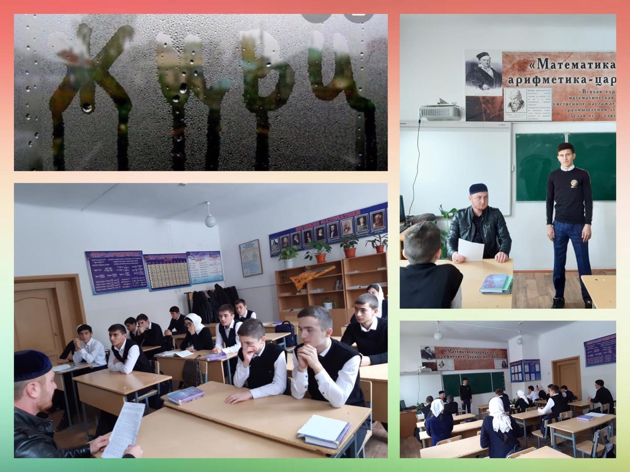 20.11.2019В рамках реализации ЕК по духовно-нравственному воспитанию и развитию подрастающего поколения в МБОУ "СОШ3 с.п. Надтеречное" со старшеклассниками проведена беседа на тему: "Суецид с точки зрения Ислама". Педагог-организатор по ДНВиР Альмурзаев У.И. рассказал учащимся о недопущении и запрете религией Ислам таких случаев как " Суецид" среди мусульман, который является большим грехом.