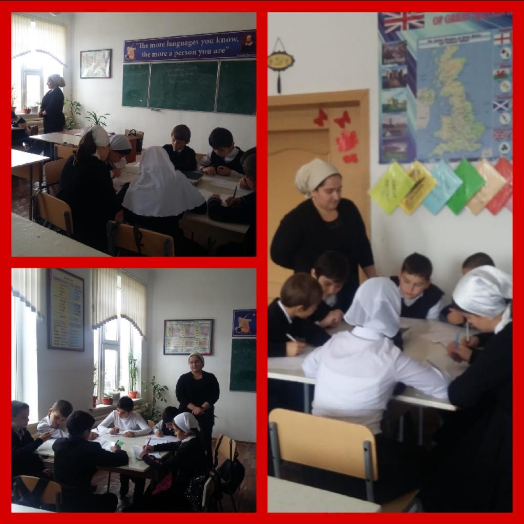 Групповая работа на уроке чеченского языка в 5 "а" классе, учитель Шехмерзаева Хадижат Мингабиевна.