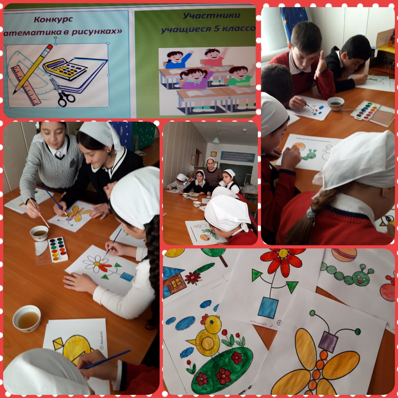В рамках "Неделя математики" состоялся конкурс "Математика в рисунках" в 5-х классах, провела учитель математики Музаева Медна Арбиевна.