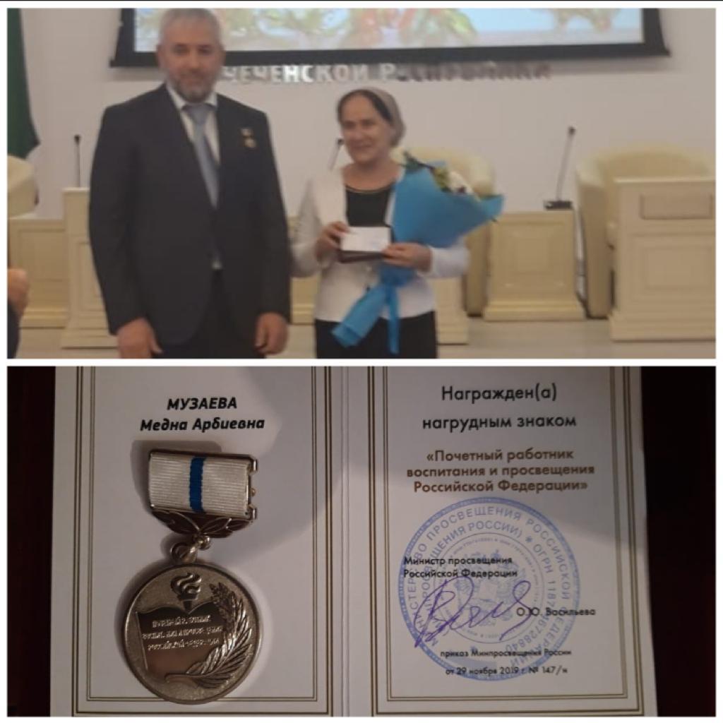 Сегодня состоялось торжественное вручение звания «Почетный работник воспитания и просвещения Российской Федерации», нашей коллеге - Музаевой Медне Арбиевне. От всего коллектива поздравляем!