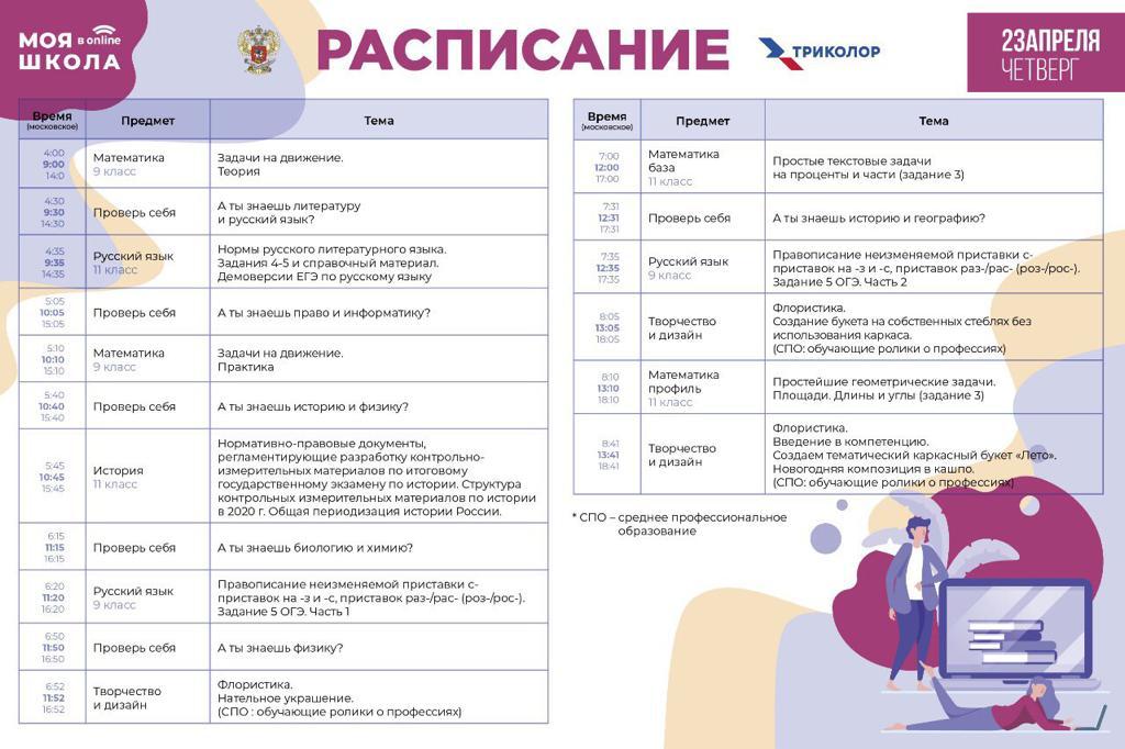 Расписание второго дня трансляции нового телевизионного образовательного проекта Минпросвещения России «МОЯ ШКОЛА в online».