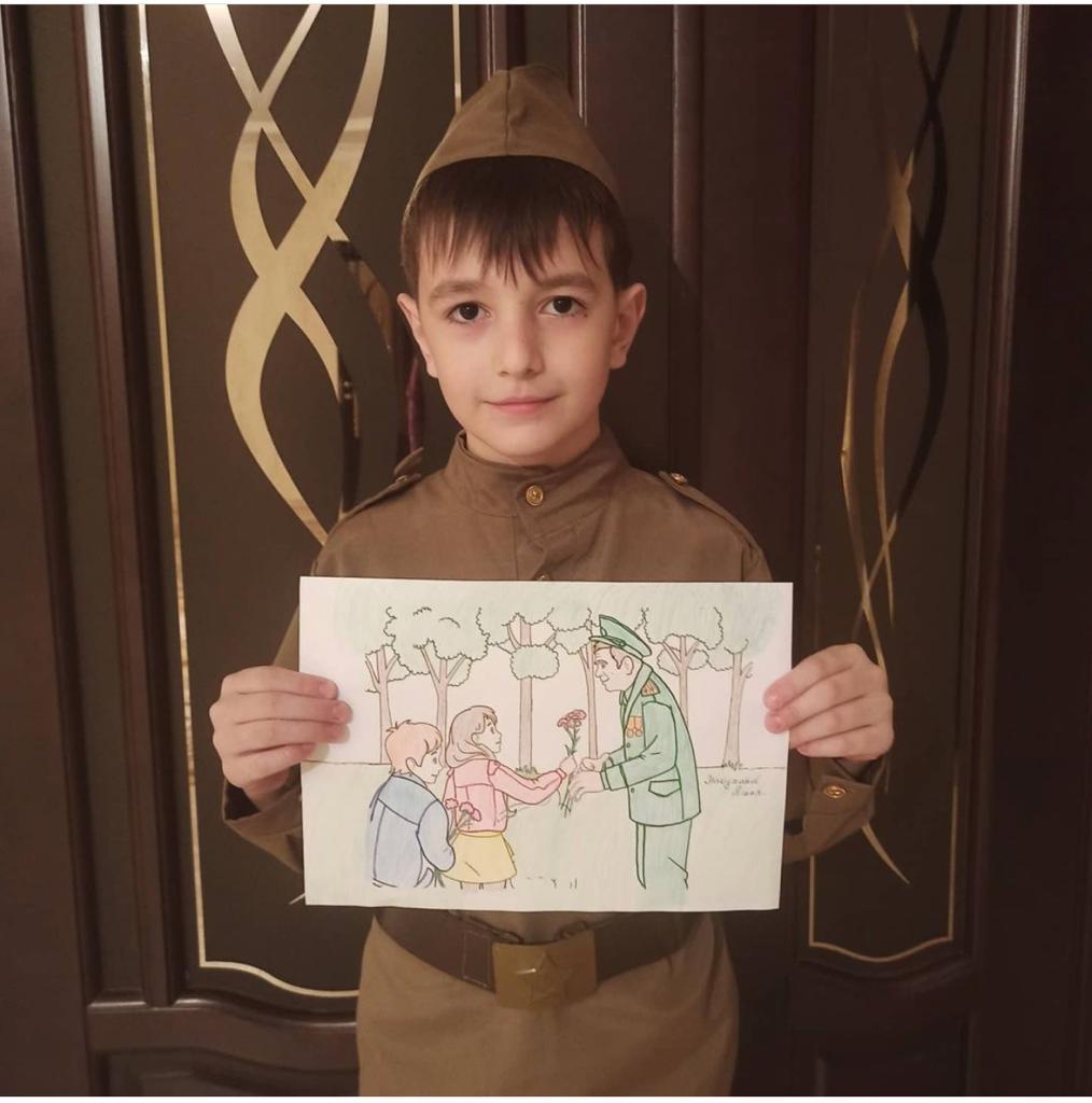 В рамках патриотической акции "Рисуем Победу" ученик 4 класса МБОУ "СОШ № 3 с. п. Надтеречное" Тасуханов Яхья предоставил свой ресунок.