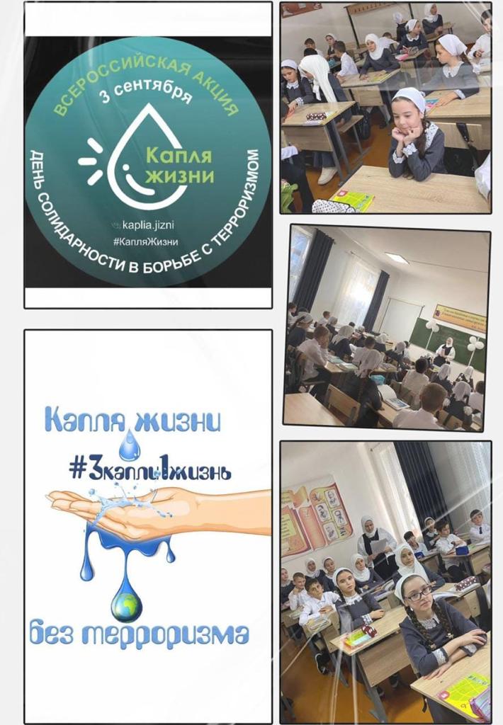 Заместитель директора по ВР Саралиева Петимат Юсуповна 06.09.2022 года провела акцию "Капля жизни", приуроченную ко Дню солидарности в борьбе с терроризмом.