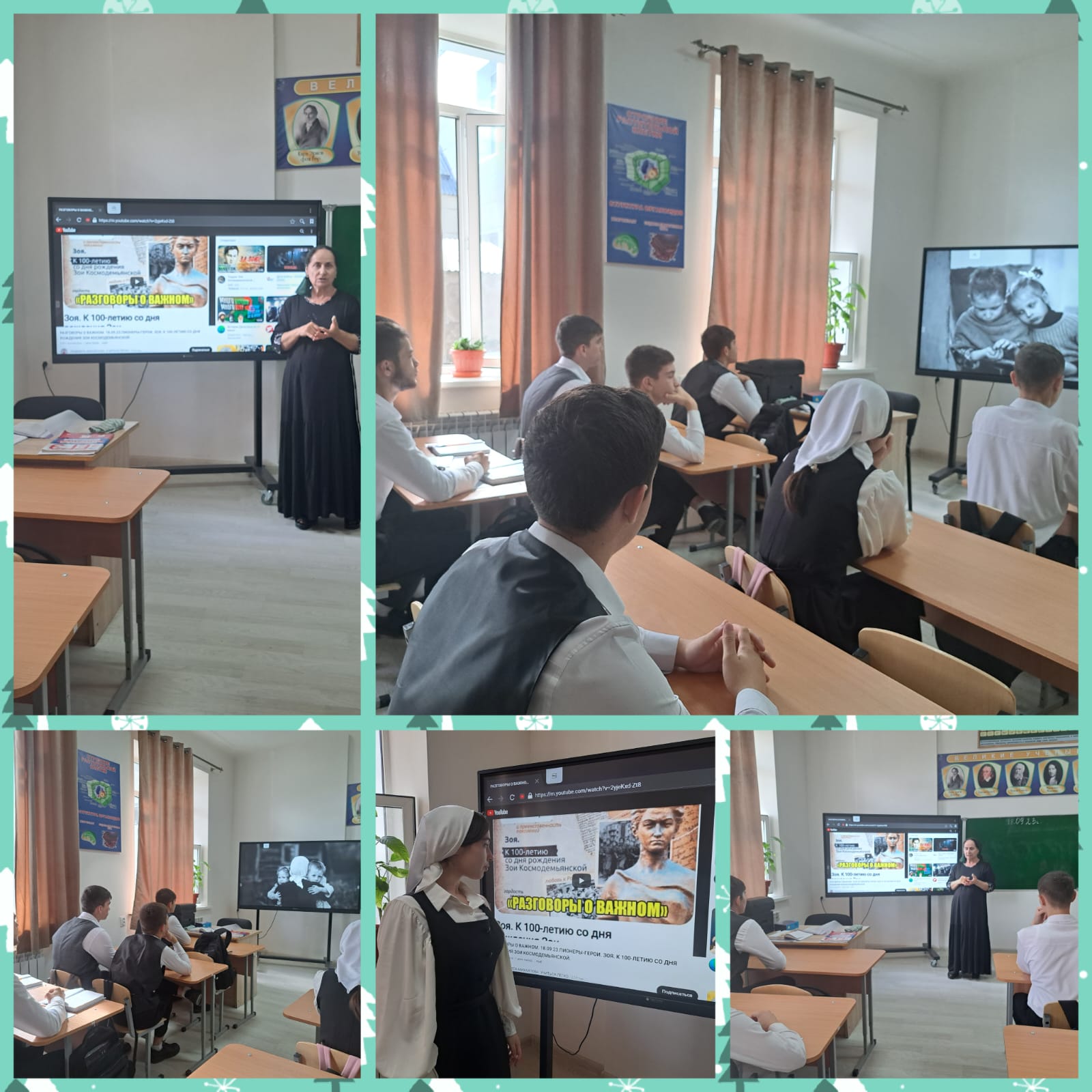 Разговоры о важном. Тема: "К 100 летию Зои Космодемьянской". Провела классный руководитель 11 класса Музаева Медна Арбиевна.