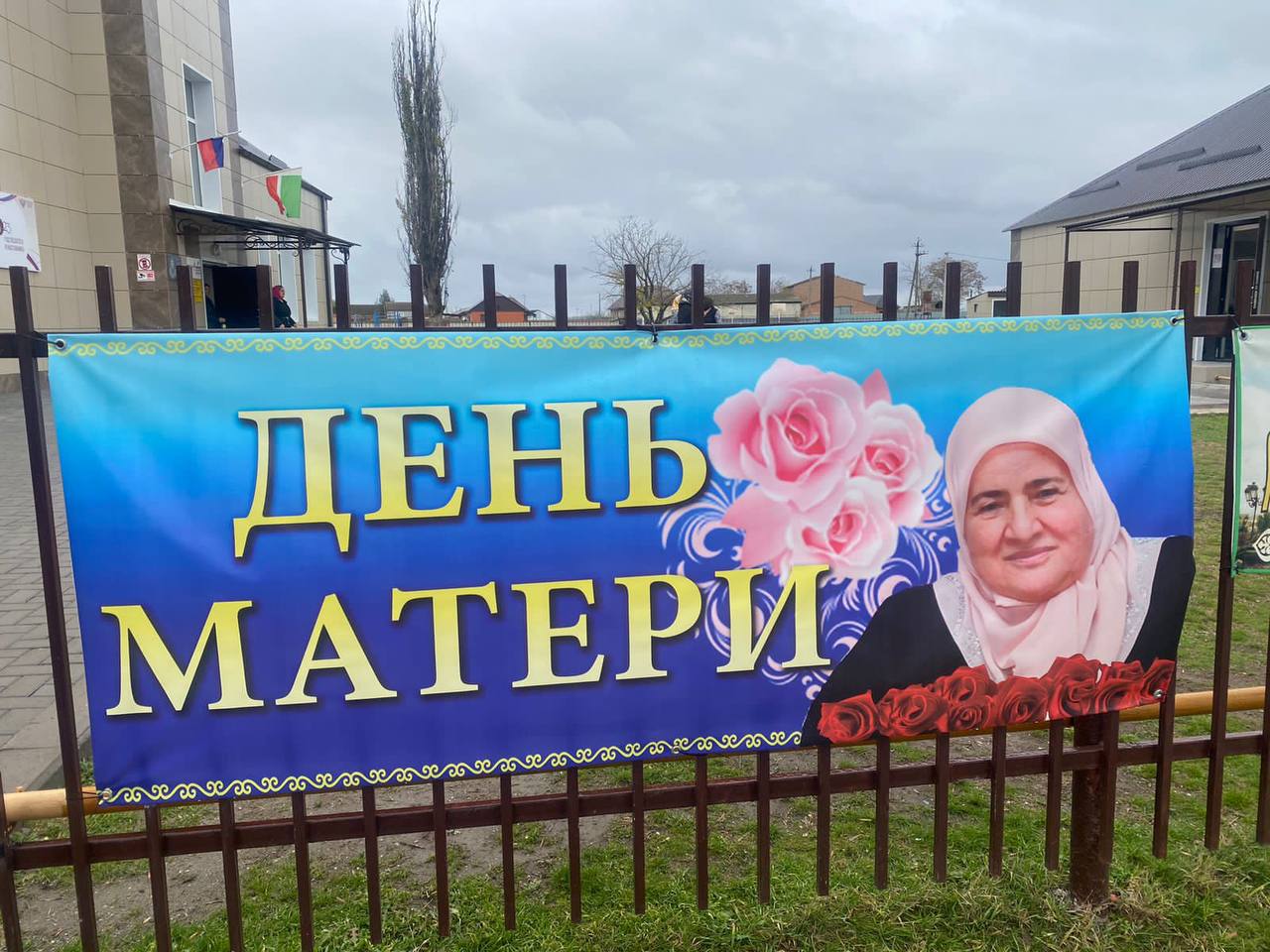 Тематическое оформление фасадов зданий баннерами ,посвященных Дню матери