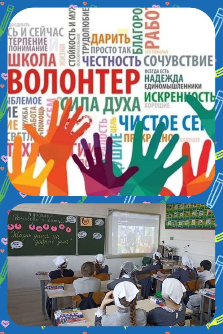 04.12.2023Очередное занятие цикла Разговоры о важном "Мы вместе", проведёно в 4классе МБОУ "СОШ ✓3 с.п.Надтеречное". Цель:знакомство обучающихся с деятельностью волонтеров,воспитание таких качеств,как доброта, отзывчивость,милосердие.