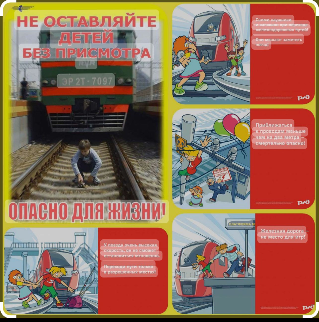 - не поднимайтесь на крыши вагонов поездов, опоры и специальные конструкции контактной сети, воздушных линий и искусственных сооружений, ведь напряжение в проводах достигает 27500 Вольт! -не приближайтесь к оборванным проводам! -не забрасывайте на провода посторонние предметы! -переходите железнодорожные пути только в установленных местах по пешеходным переходам, мостам, тоннелям! -не используйте наушники при переходе через железнодорожные пути!- не подлезайте под железнодорожным подвижным составом, пассажирскими платформами и не перелезайте через автосцепные устройства! -находясь рядом с железнодорожными путями, при приближении поезда отойдите на безопасное расстояние!