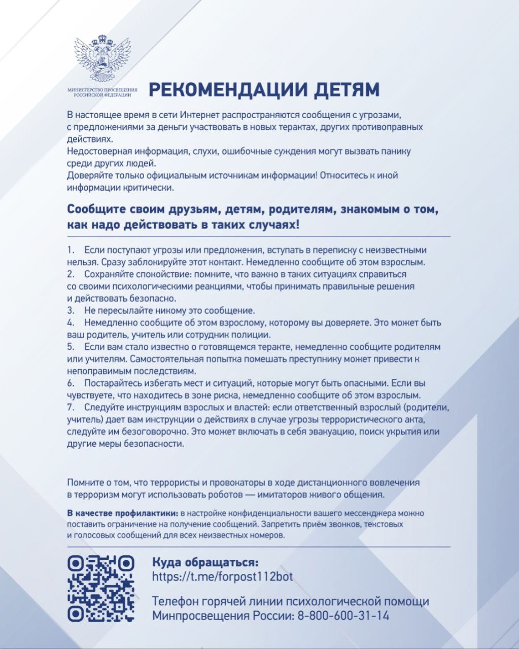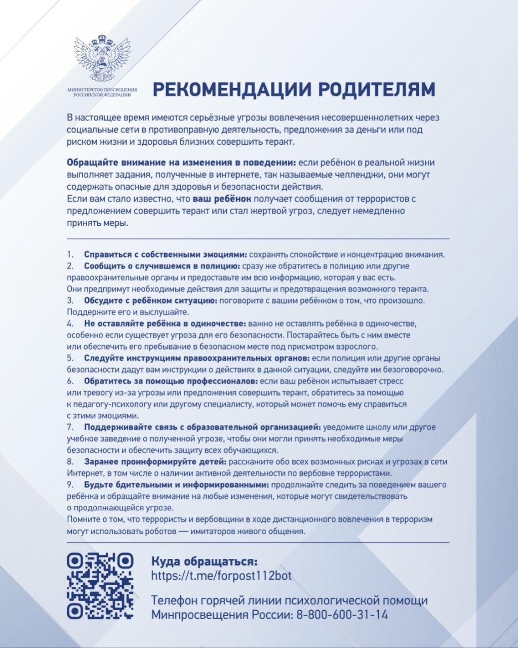 Рекомендации родителям и детям