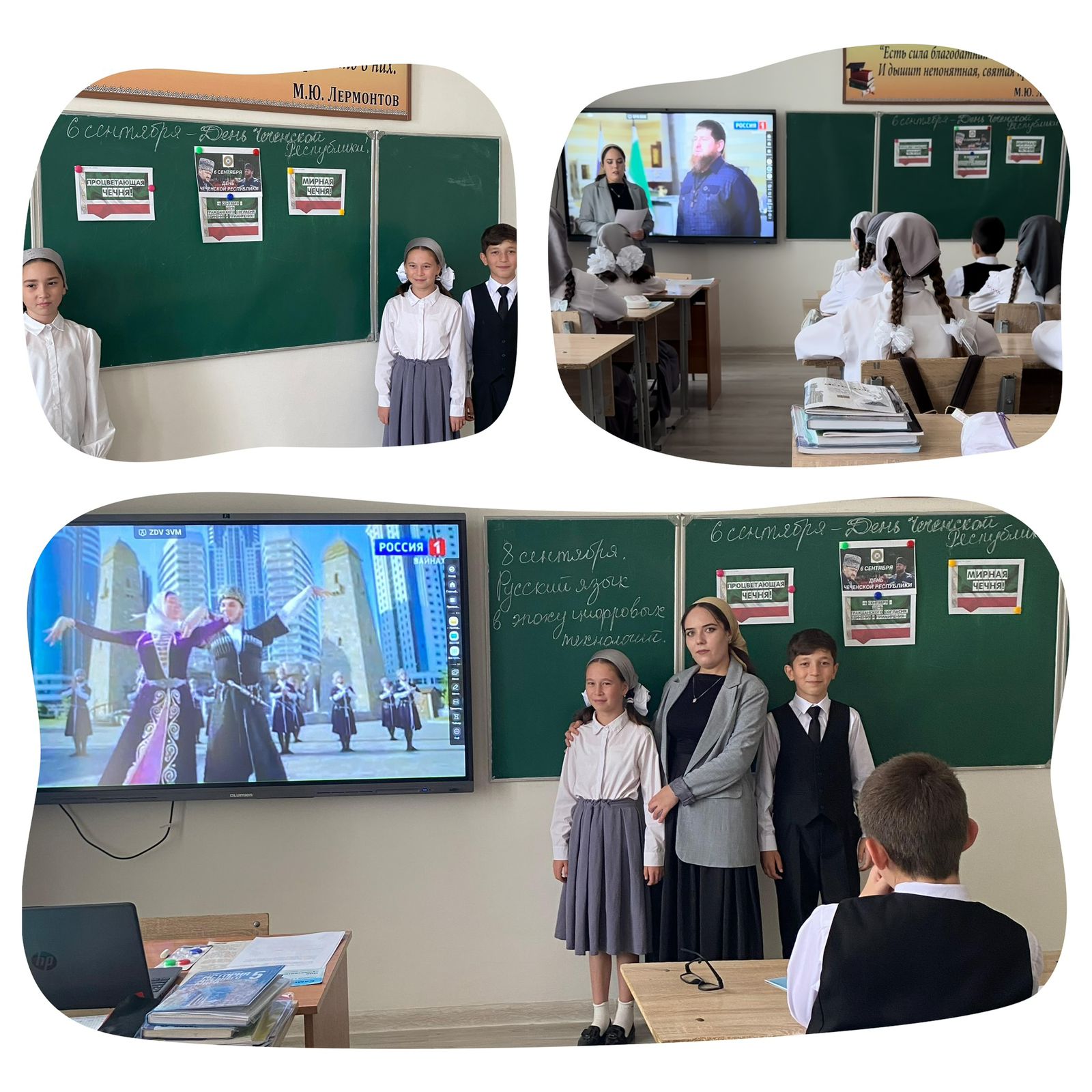 08.09.20258 сентября 2025 г классный руководитель 5 класса Тазиева Р.А. провела классный час «День Чеченской республики». Была проведена беседа о подвиге первого президента Чеченской республики, героя России Ахмата-Хаджи Кадырова. Была ярко, красочно оформлена доска. Дети читали стихотворения про свою Родину, столицу ЧР.