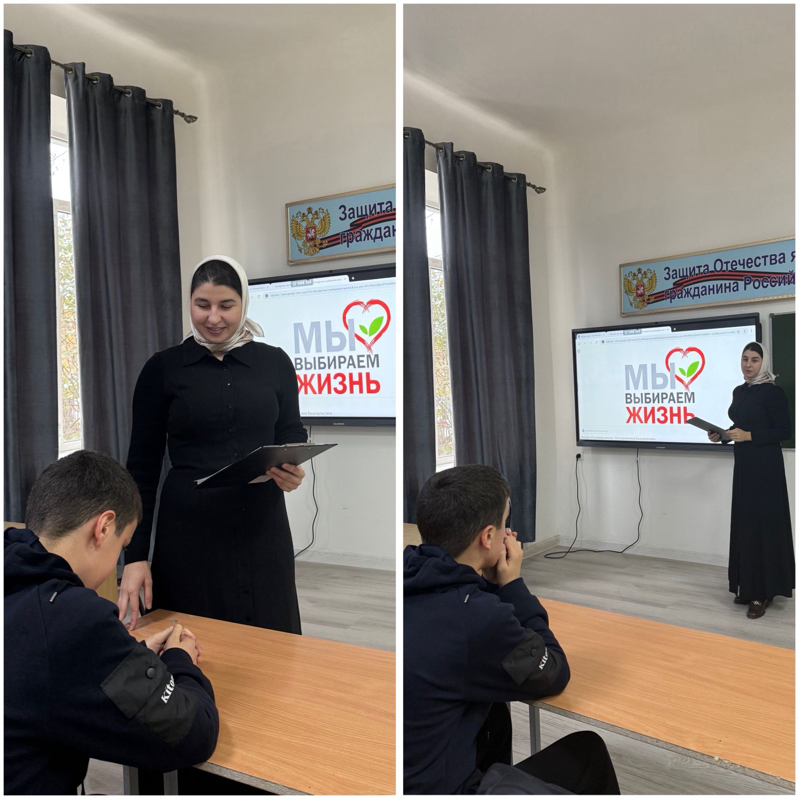 11.11.2025Соц.педагог МБОУ «СОШ№3 с.п. Надтеречное» Мудаева Иман провела беседу с надомником.На тему «Мы выбираем жизнь». Мероприятие было направлено на профилактику асоциального поведения, формирование позитивных жизненных ценностей и осознанного выбора в пользу здорового образа жизни.