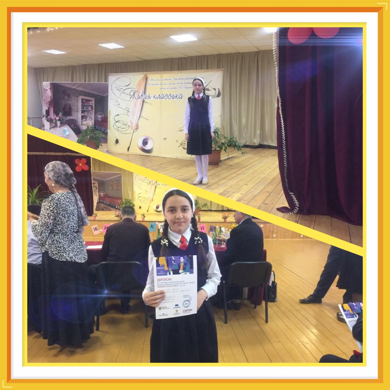 Ученица 6 "А" класса МБОУ "СОШ № 3 с. п. Надтеречное" Есиева Д. приняла участие в Муниципальном этапе Всероссийского конкурса юных чтецов "Живая классика".